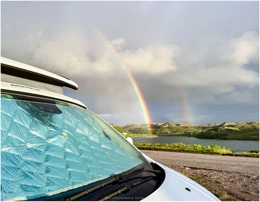 Das sympathische an kleinen Campingplätzen / Stellplätzen sind die unkomplizierten Camper, die sehr oft mit kreativ selbst ausgebauten Vans, Vanlifer, Zeltkonstruktionen oder Dachzelten unterwegs sind. Da ergeben sich immer wieder tolle Gespräche, wenn auch Schottisch doch sehr gewöhnungsbedürftig ist. Oder habt ihr schon mal einen normalen Transporter mit Pizzaofen gesehen?
