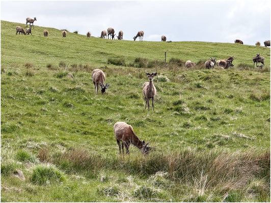 Immerhin ist die Landschaft wunderschön und sehr ruhig. Umgeben von Schafen und jede Menge Rotwild finden wir einen schönen Übernachtungsplatz.