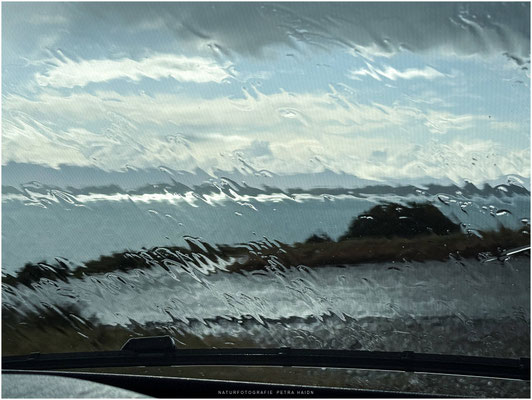 Langsam besserte sich das Wetter und bei 11 Grad Regen-Sonne-Mix setzten wir unsere Tour entlang der Küstenstraße fort. Ein kleiner Pass wurde sogar als schwierig ausgeschrieben. Naja, man sollte halt wissen wie groß sein Fahrzeug ist und rückwärts fahren können.