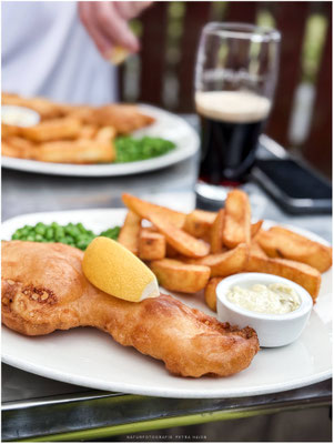 Wenn schon in UK und am Meer ist, dann muss es auch mal ganz klassisch und regional sein. Also ran an Fish&Chips das natürlich so frisch unvergleichlich ist. Dass der britische Humor immer wieder unschlagbar ist zeigte sich auch in dem vielversprechenden Schild am Restauranteingang. Spoiler: wir haben es überlebt und das Essen war großartig.