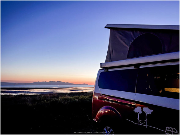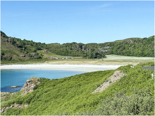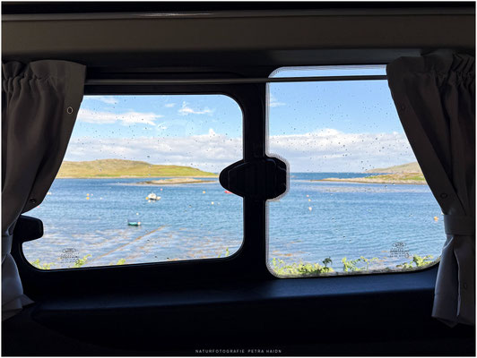 Die Krönung des Tages war dann noch unseren traumhafter Übernachtungsplatz. Sonne, Meer und noch ein paar sehr entspannte Schotten mit selbst ausgebauten Vans. So lässt es sich aushalten.
