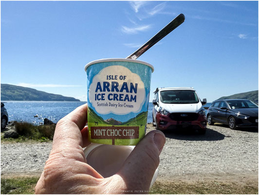 Was gehört zu einem Urlaub am Meer in Schottland dazu? Genau Besuch einer Whisky-Distillery (Lagg und Arran Distillery) und Eis. Wie praktisch wenn man das gleich kombinieren kann.