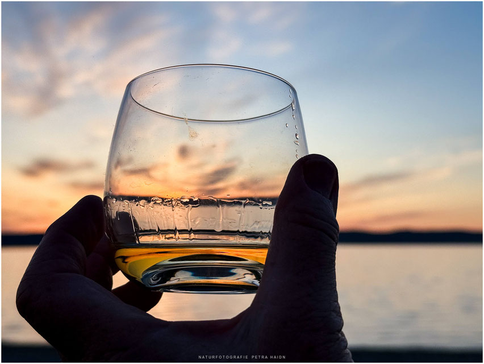Die abendliche schottische Sonne leuchtete durchs Whiskyglas.